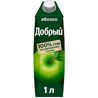 Сок без добавления сахара, консервантов и красителей в удобной упаковке для большой семьи или компании. Обладает насыщенным освежающим вкусом кисло-сладких яблок и содержит 39 % калия, 9 % железа и 5 % магния (в одном стакане объёма 250 мл от суточной нормы, рекомендованной для питания детей трёх лет в соответствии с Методическими рекомендациями МР 2.3.1.2432-08).